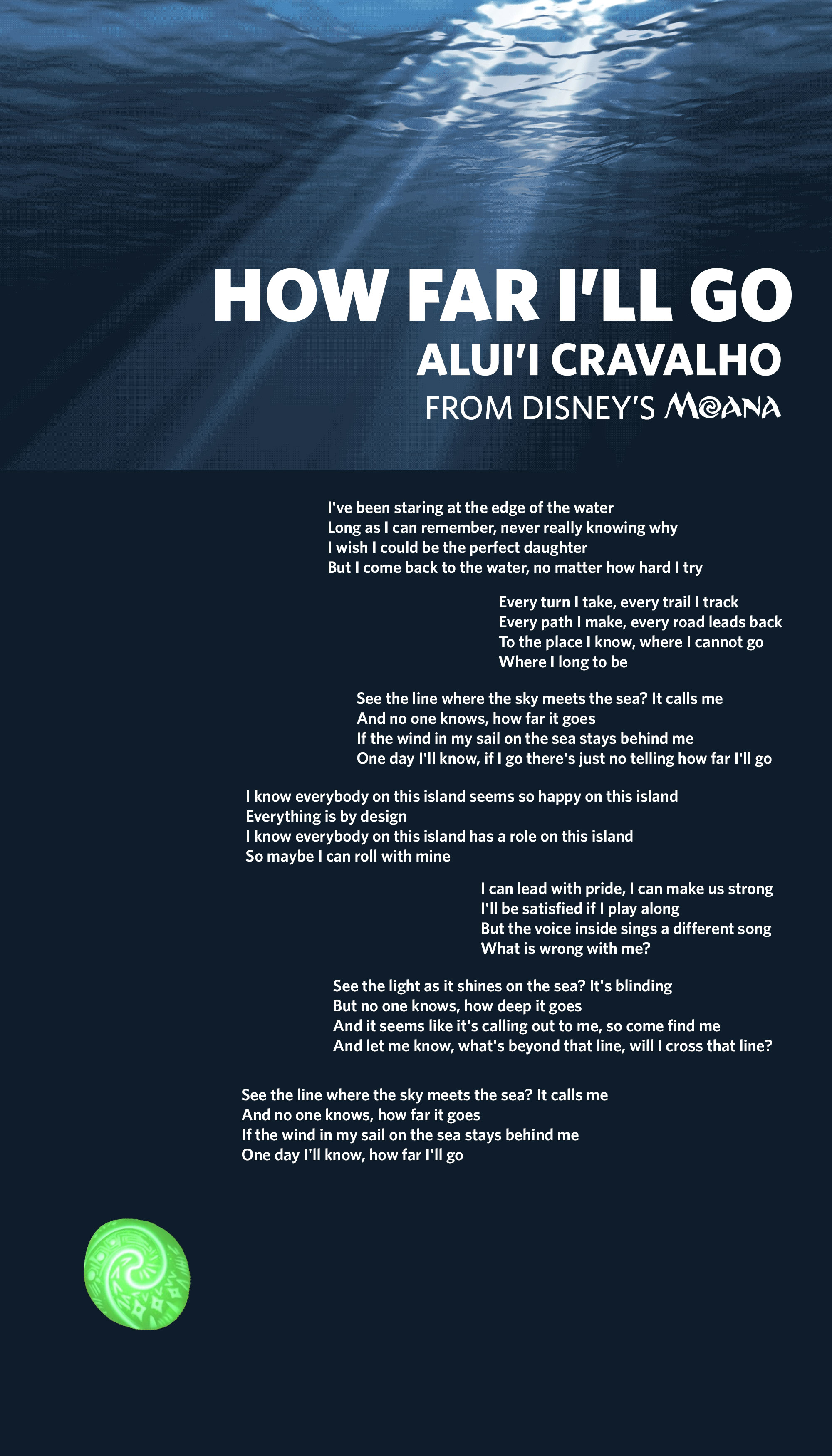 I met with Neema and Arianna to talk about my work, and decided that my background image was too low resolution, so I've switched it to a solid color. Arianna suggested using a gif of the ocean instead of a still picture, which I plan on doing. Neema suggested using a different font for the body, and I plan on using a sans from google fonts for that. She also suggested staggering the text, instead of making it a solid column. While I'm not sure that the iteration I have below is the most successful, that can be massaged more with html. Something I can't show in a jpg is my plan for the heart of tefiti (the green thing), which is that it will be a fixed object and "sink" as you scroll, as well as glow when hovered.